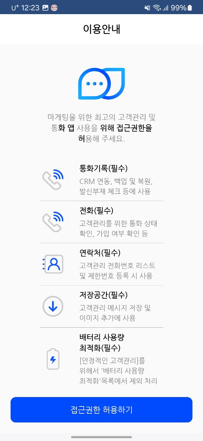 [ 권한 요청하기 → 적용하기 → 허용 → 약관동의 전체동의